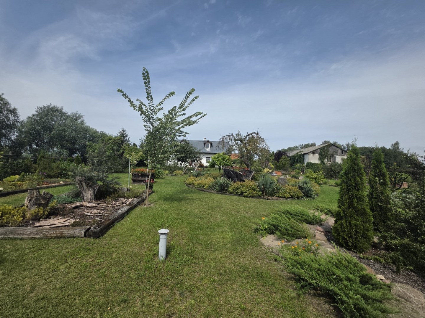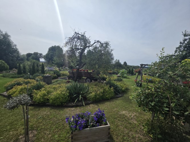 Działka która jest przedmiotem oferty częściowo jest przeznaczona na uprawę polową a częściowo zagospodarowana jako ogród. Liczne nasadzenia w bardzo dobrym stanie, krzewy i kwiaty ozdobne, drzewa owocowe, folia ogrodowa z warzywami, zagroda dla kur, altana grillowa, oczko wodne