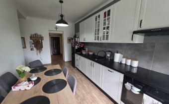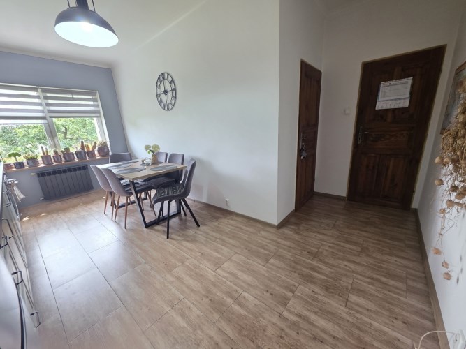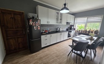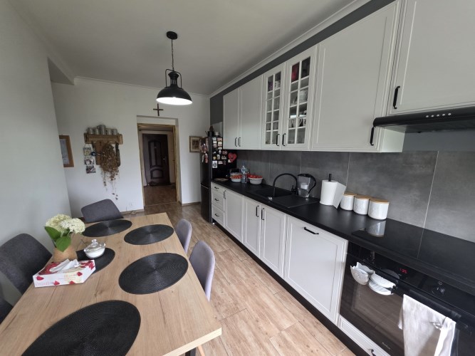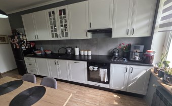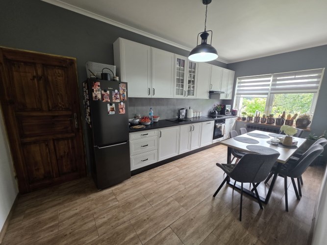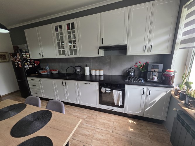 Kuchnia o pow. 13,2m2, meble oraz sprzęty z 2024r., płyta indukcyjna, piekarnik, zmywarka 60cm, lodówko-zamrażarka, pochłaniacz zapachów, stół z krzesłami