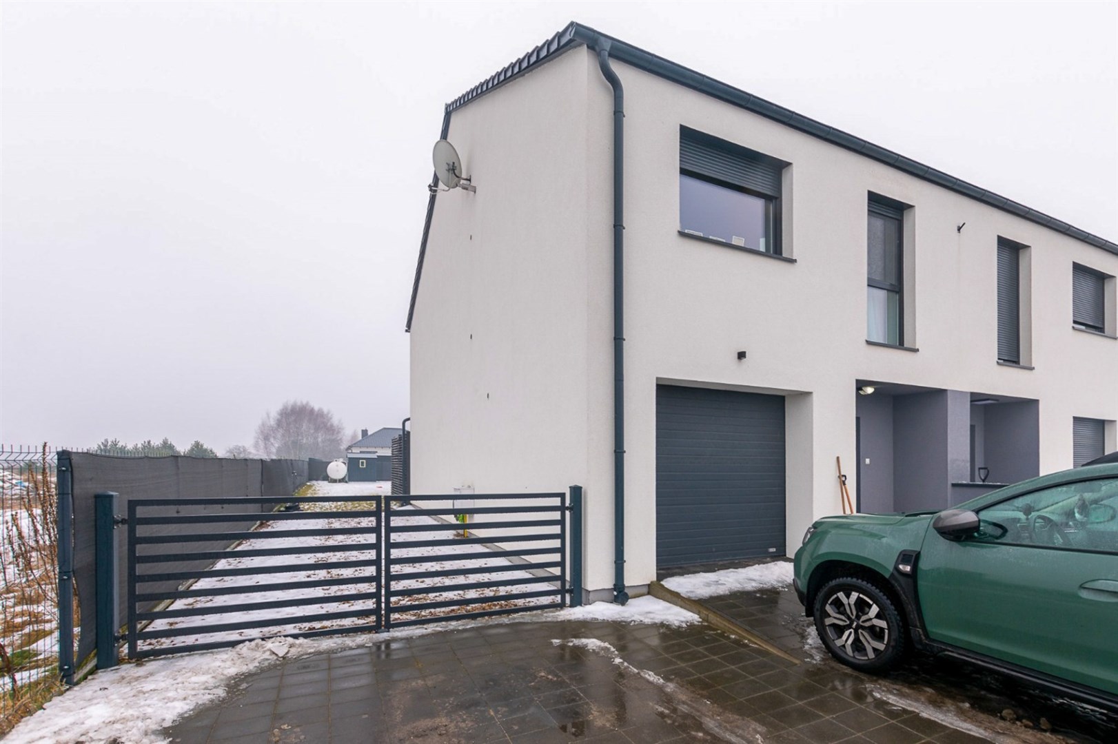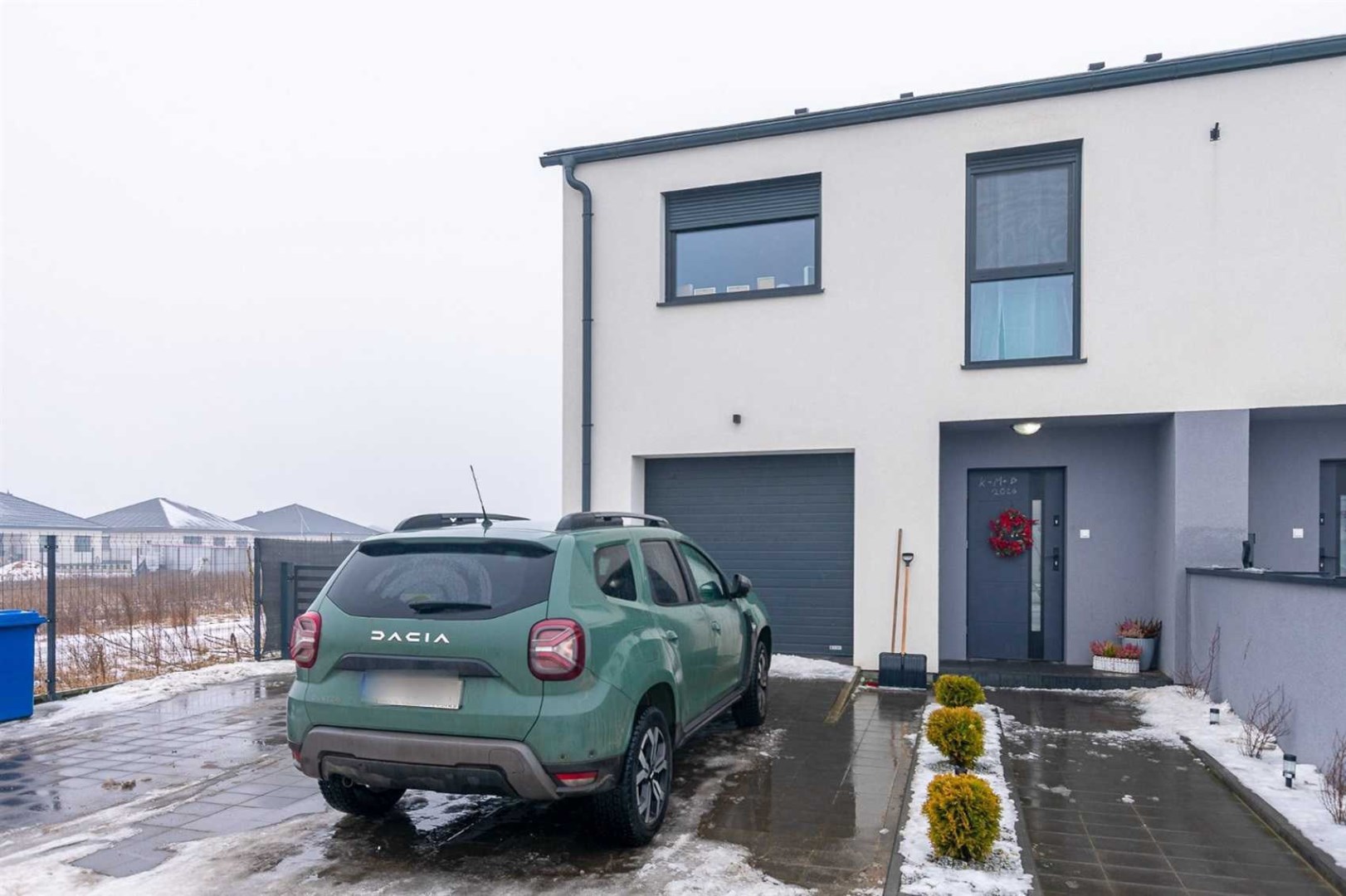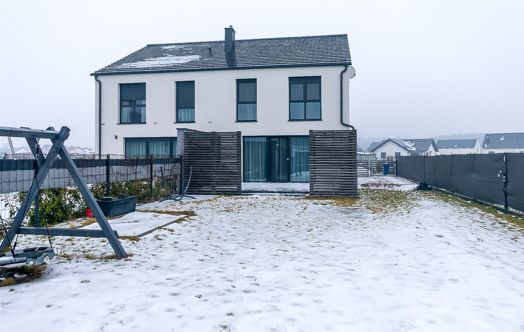 Dom znajduje się na nowym osiedlu domów jednorodzinnych.