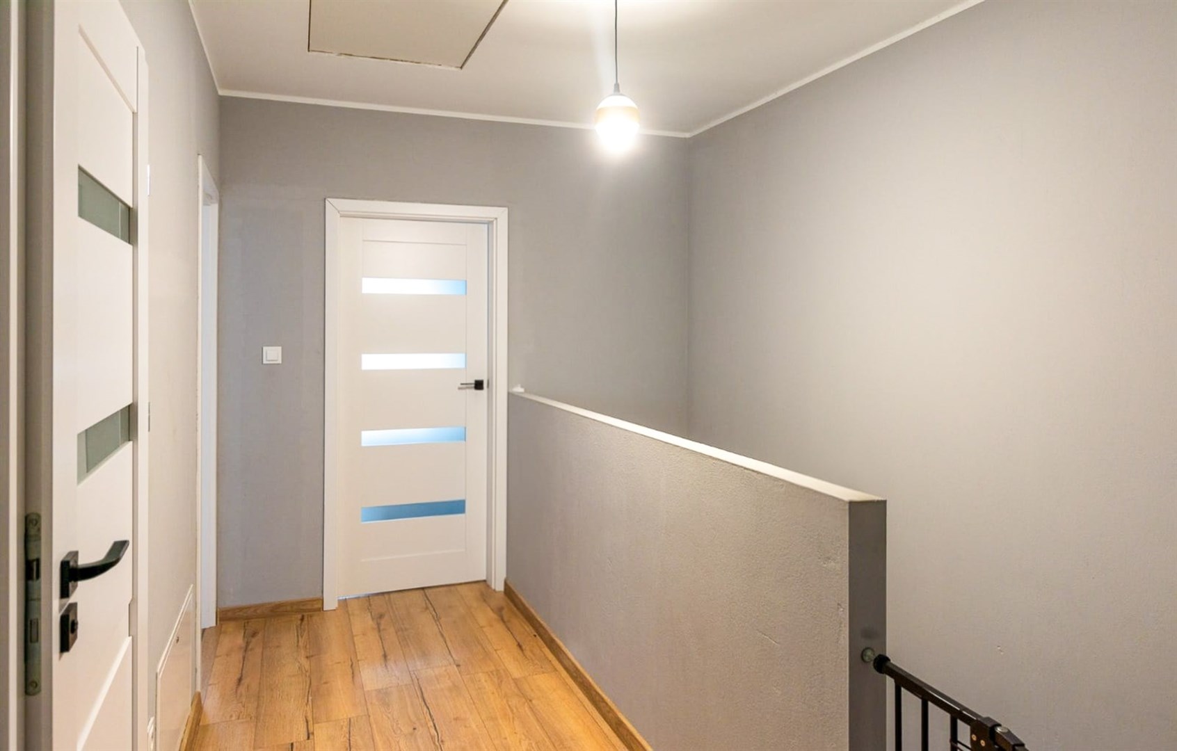 Klatka schodowa - schody drewniane, barierka zabezpieczająca na dole i górze - 4,15 m²
