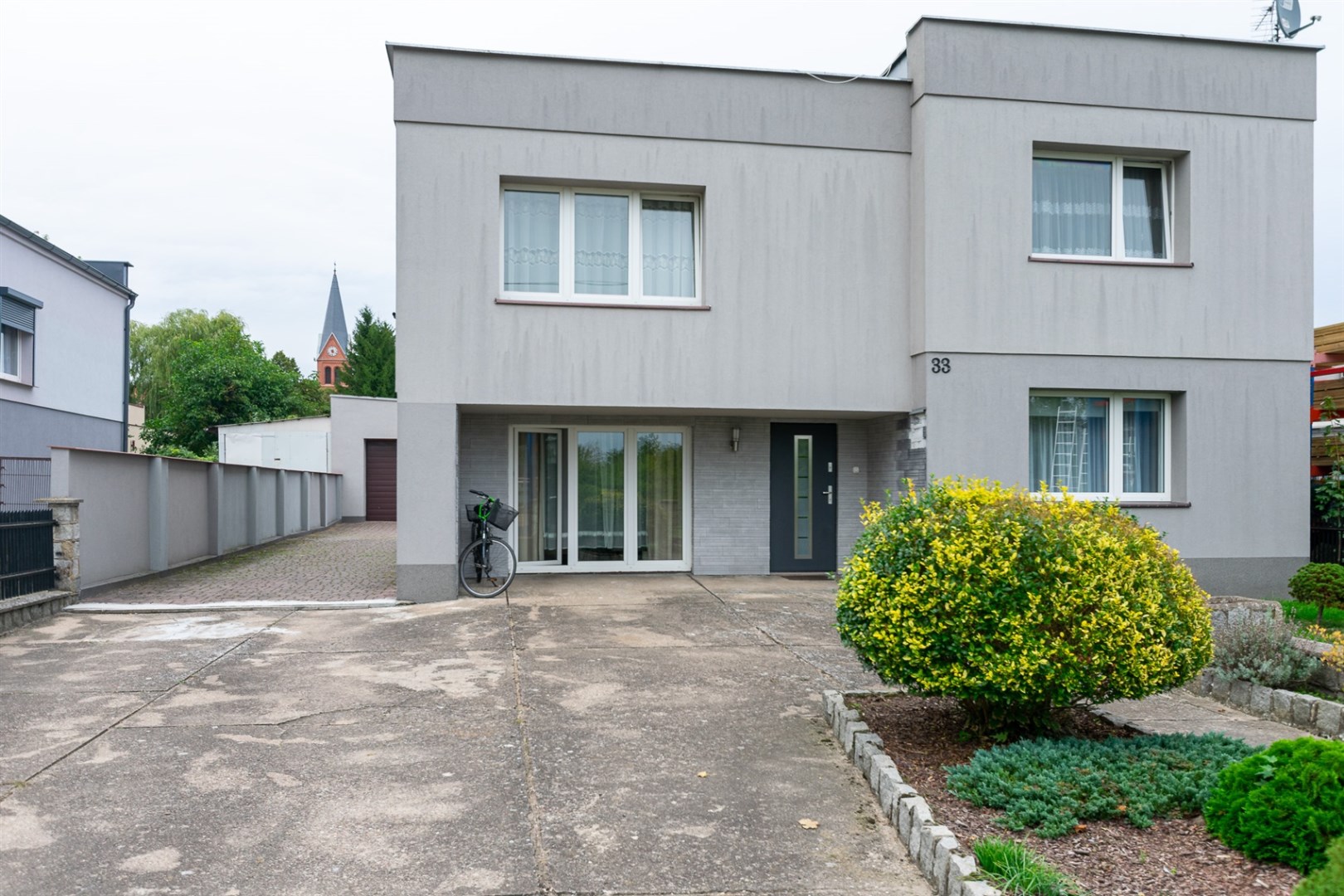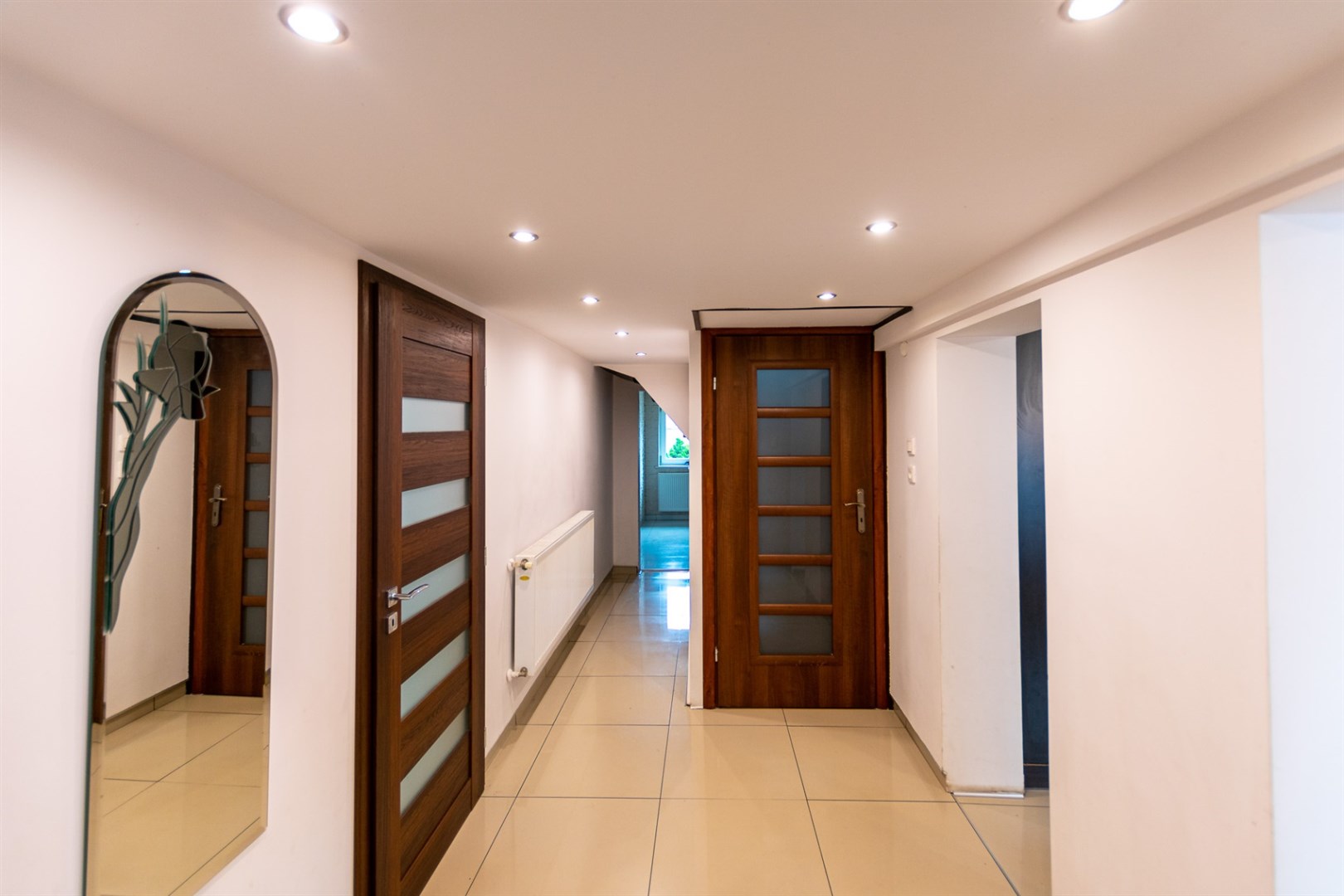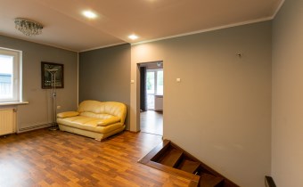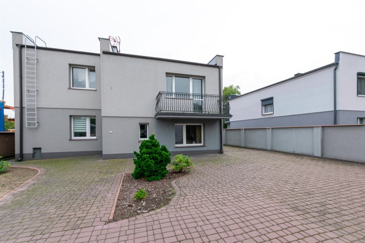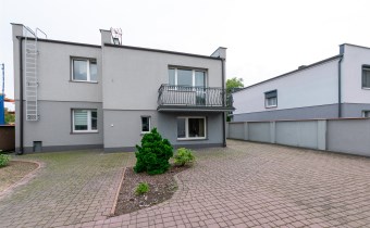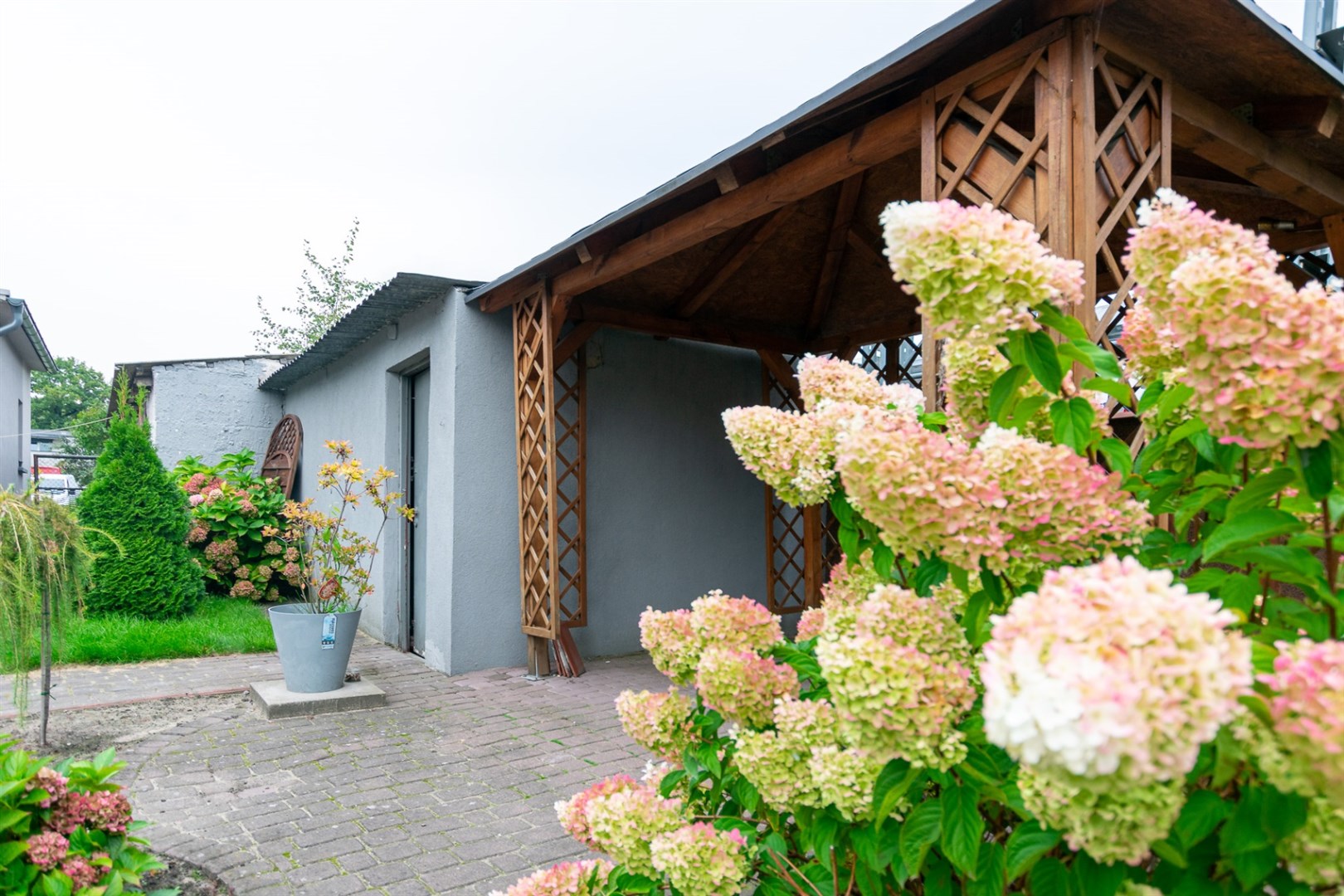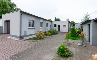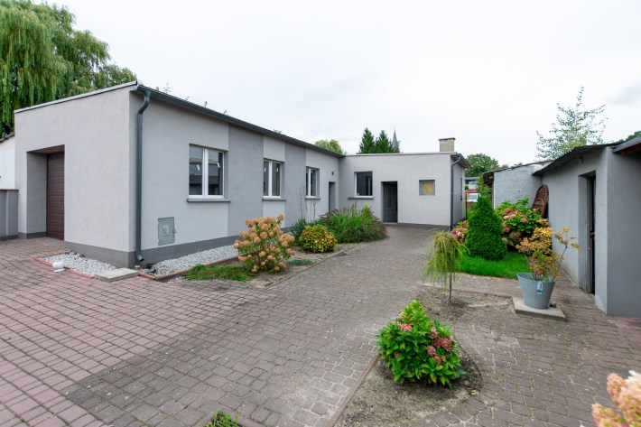 Na tyłach domu podwórko, przestronny garaż oraz pomieszczenia gospodarcze.