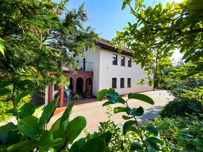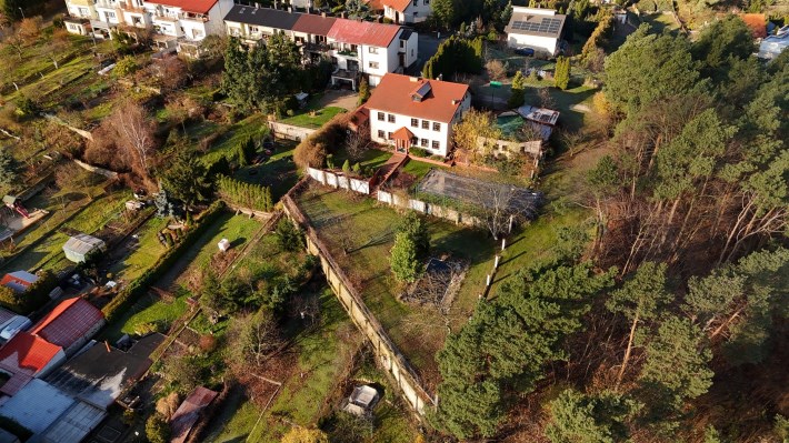 - działka: 3385 m² (pełna prywatność, dojrzały ogród, cisza)