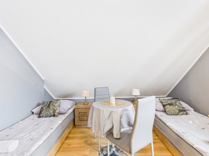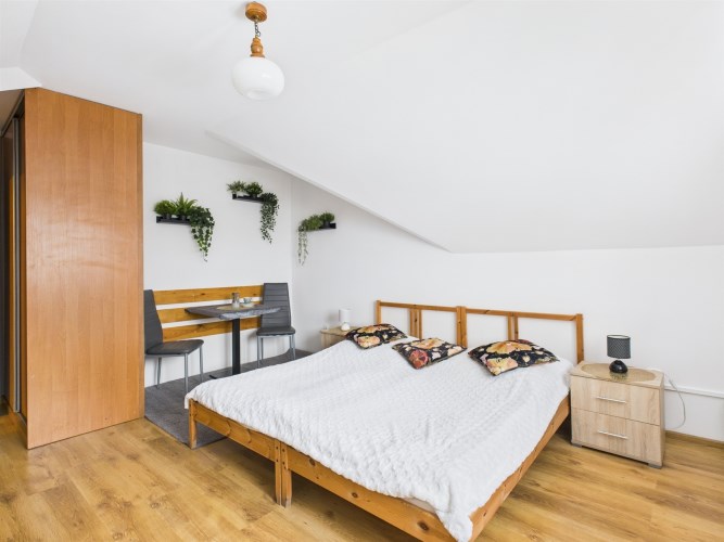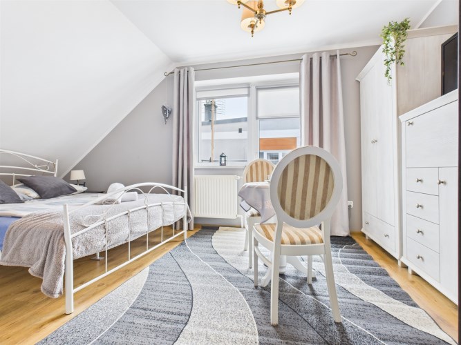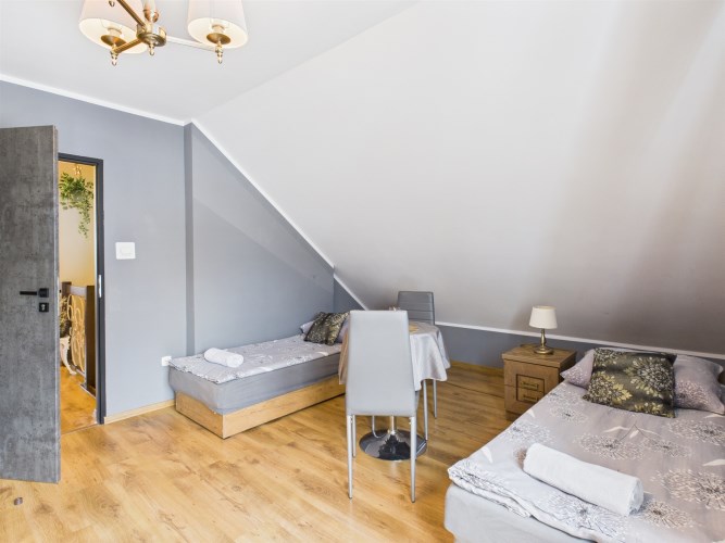 Ogromną wartością tej nieruchomości są dwa dodatkowe pokoje z osobnymi łazienkami, do których wejście znajduje się z zewnątrz. To idealne rozwiązanie dla osób, które: