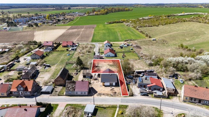 Okolica charakteryzuje się luźną zabudową jednorodzinną, ciszą oraz bezpośrednim sąsiedztwem pól i lasów, co czyni tę nieruchomość idealnym miejscem do zamieszkania dla osób ceniących spokój i kontakt z naturą.