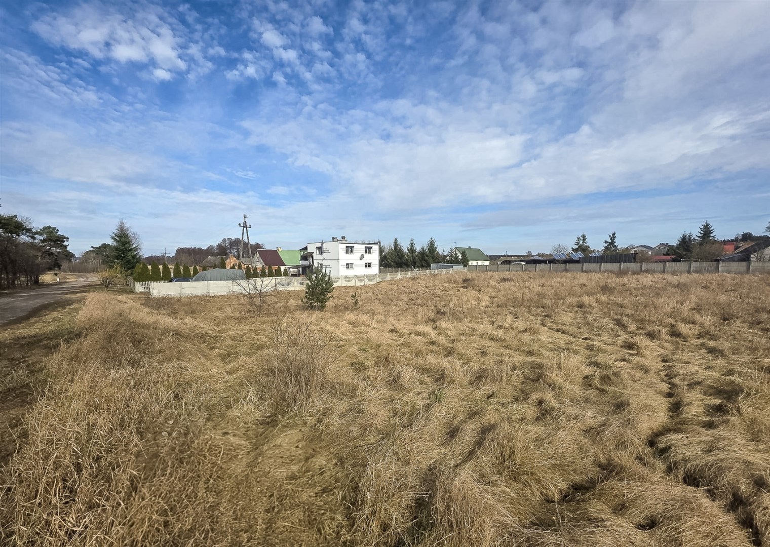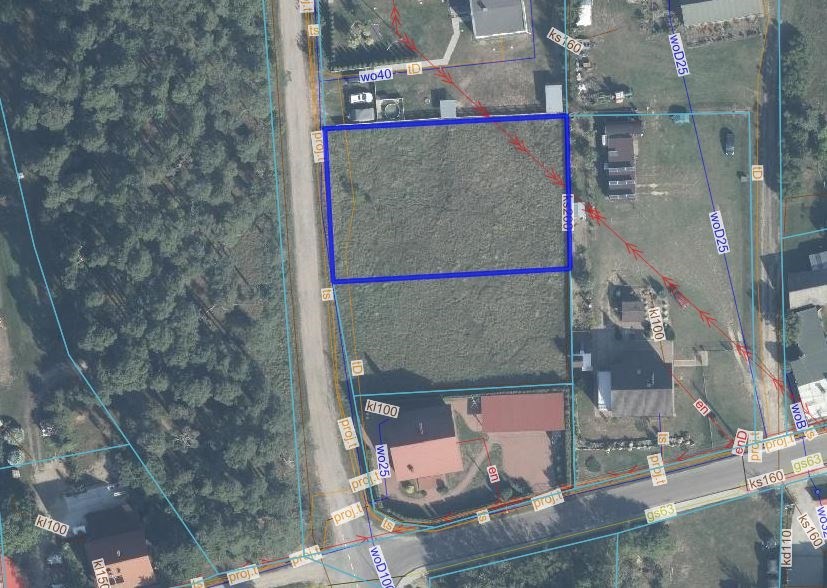 Media: woda, kanalizacja - w drodze wzdłuż granicy działki, prąd - w ulicy i na sąsiednich działkach.