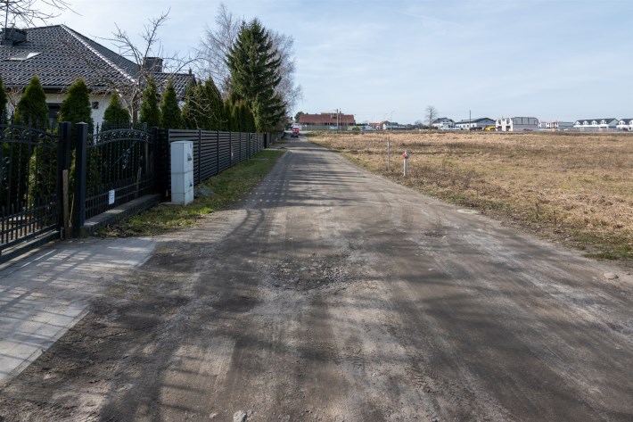 Uzbrojenie: prąd, woda i gaz w drodze gruntowej.