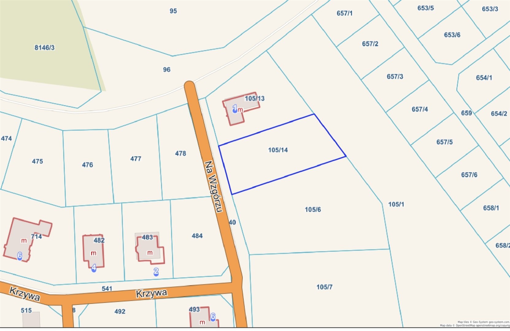Działka w kształcie prostokąta.