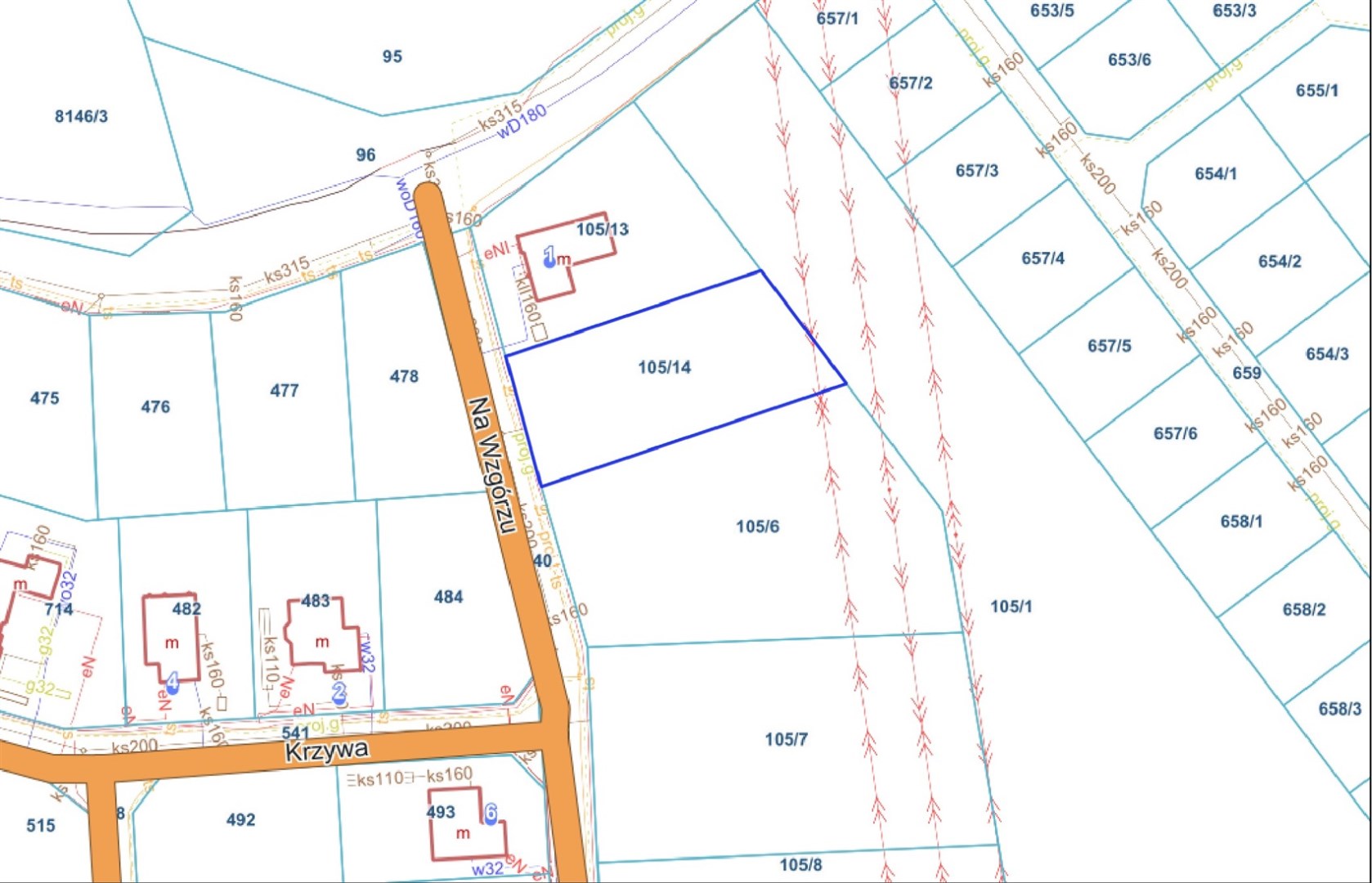 Uzbrojenie: prąd, kanalizacja, woda w ulicy.