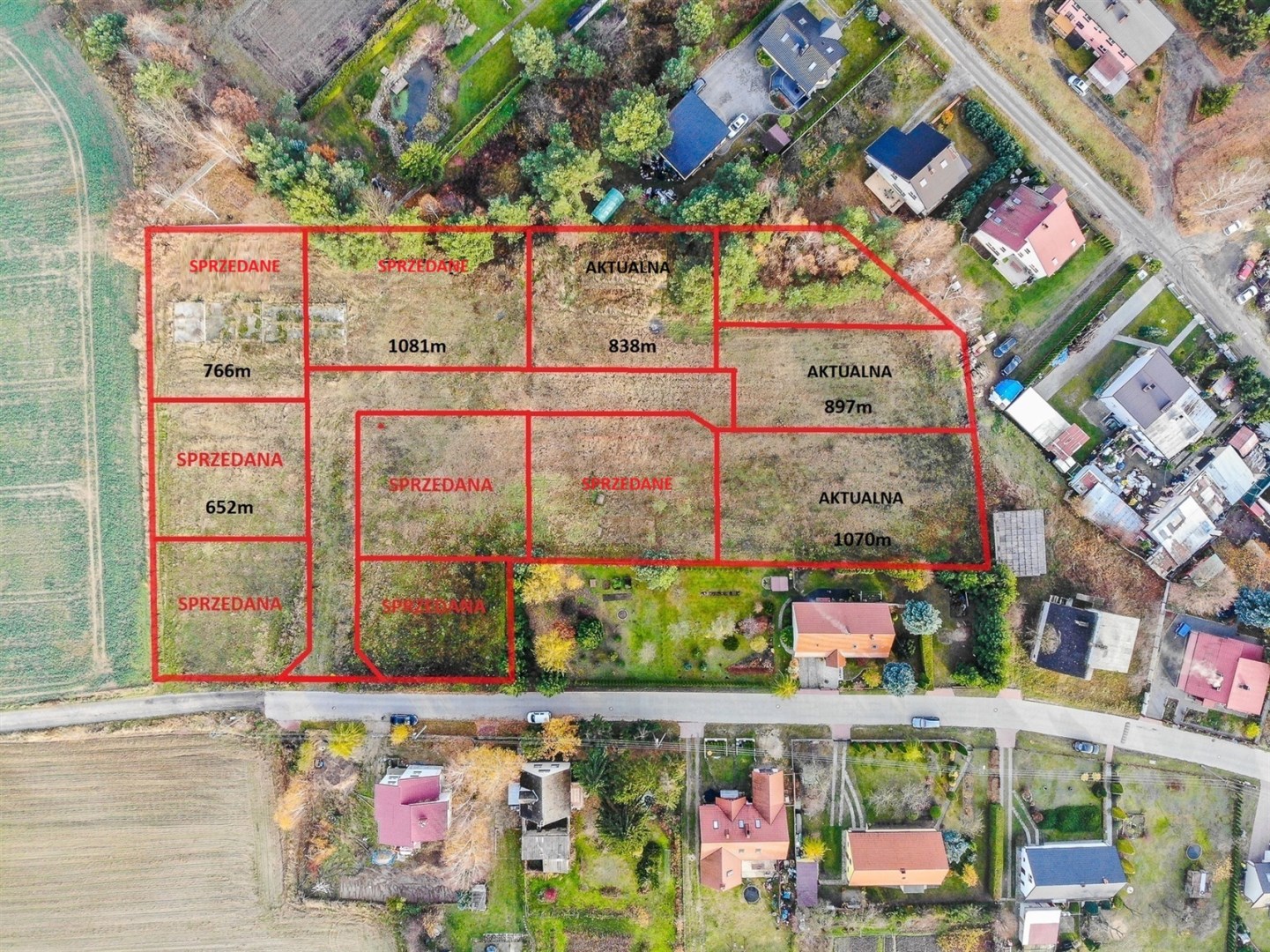 Na sprzedaż 10 działek budowlanych o powierzchniach od 730 do 1100 m2.