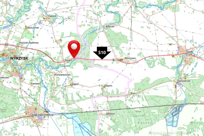 Na sprzedaż atrakcyjny teren inwestycyjny położony w miejscowości Ruda obok Wyrzyska (powiat pilski, województwo wielkopolskie), w strategicznej lokalizacji bezpośrednio przy trasie S10, w połowie odległości pomiędzy Piłą, a Bydgoszczą.