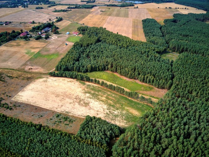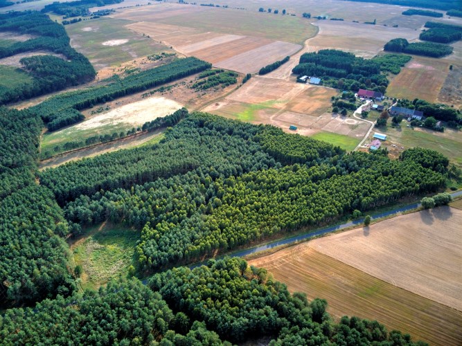 Teren działek jest całkowicie zadrzewiony.