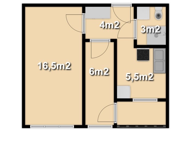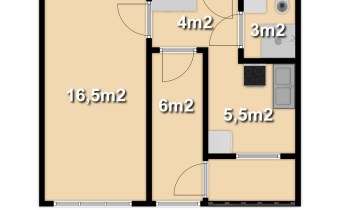 W skład lokalu wchodzą 2 pokoje o powierzchni ok. 16,5m2 i 6m2, kuchnia o powierzchni ok. 5,5m2 oraz łazienka wraz z WC o powierzchni ok. 3m2