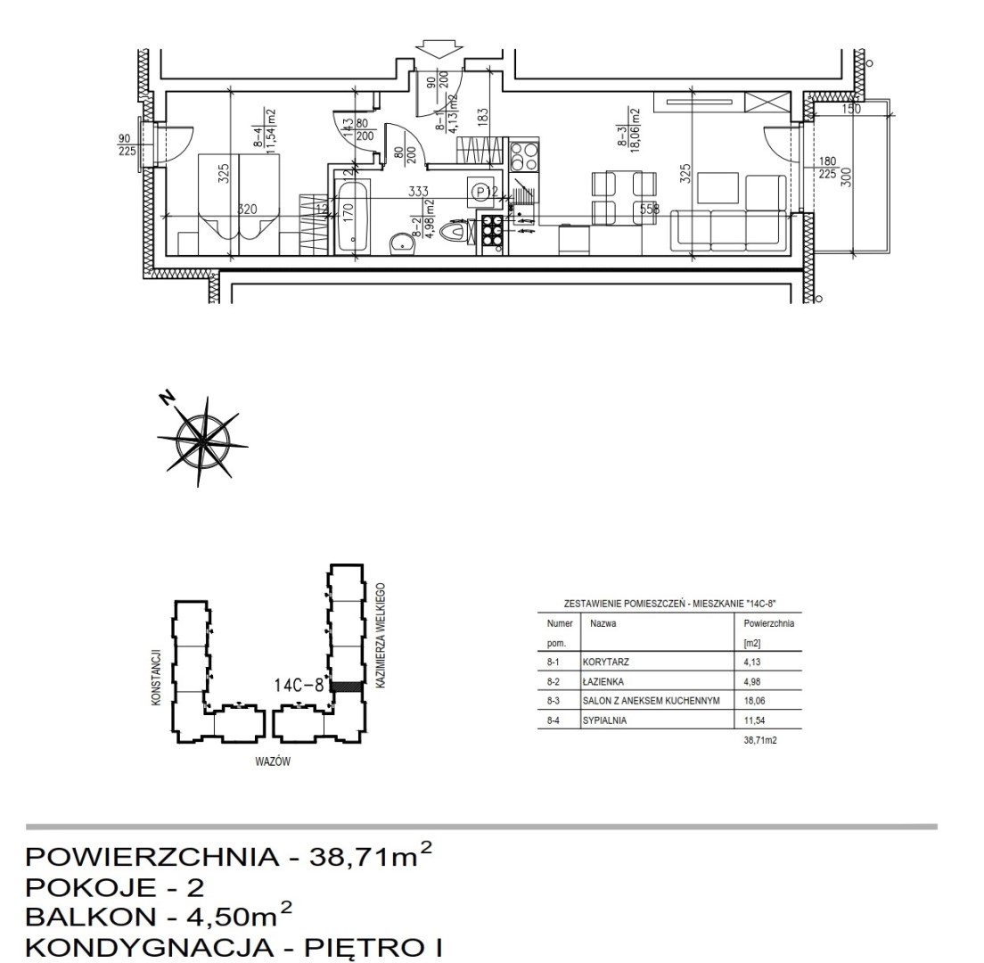 MIESZKANIE 2 POKOJOWE O POW. 38,33 M2 W STANIE DEWELOPERSKIM (I PIĘTRO)