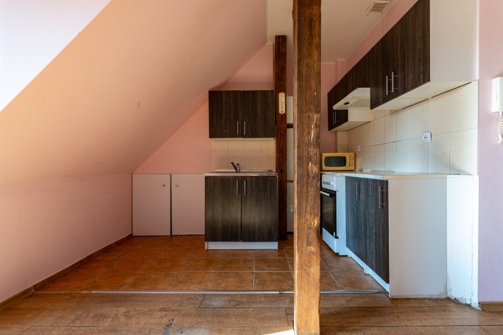 Lokal usytuowany jest na poddaszu (II piętrze) w budynku wybudowanym w latach 50', zaledwie 350m od parku miejskiego.