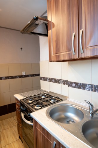 Na wyposażeniu pozostają m.in.: kuchenka, piekarnik, pralka.
