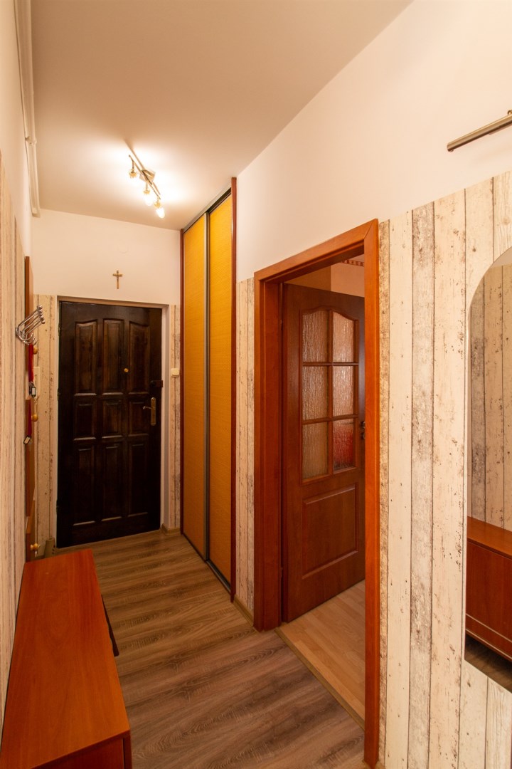 Tytułem oferty jest słoneczne mieszkanie w centrum miasta.