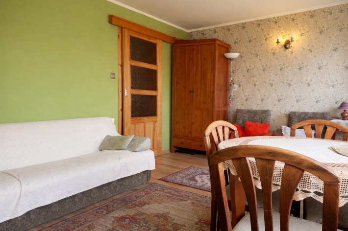 Mieszkanie do odświeżenia, co daje pełną swobodę aranżacyjną — idealna baza zarówno pod własne potrzeby, jak i pod szybki wynajem.