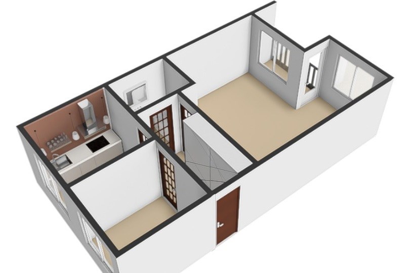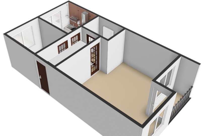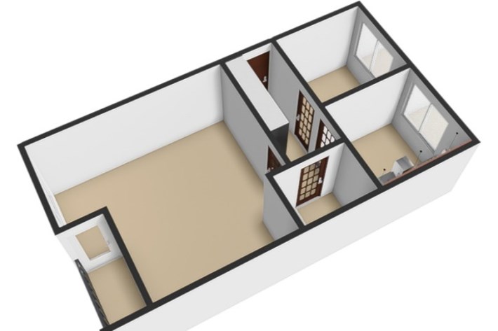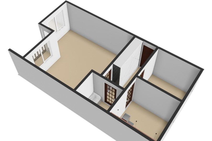 Salon o powierzchni ok. 23,12m2, sypialnia o powierzchni ok. 6,39m2.