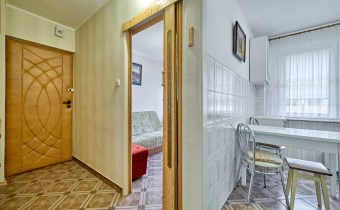 Przedpokój o powierzchni ok. 5,04m2 o funkcjonalnym układzie, zapewnia swobodne korzystanie z poszczególnych pomieszczeń, przewidziane miejsce na szafę w zabudowie.