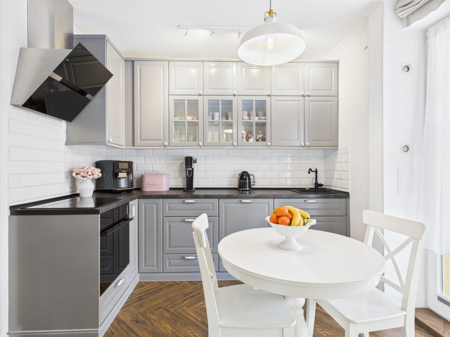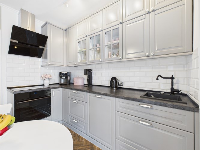 • W cenie pozostaje zabudowa kuchenna wraz ze sprzętem AGD: zmywarka, okap, płyta indukcyjna,