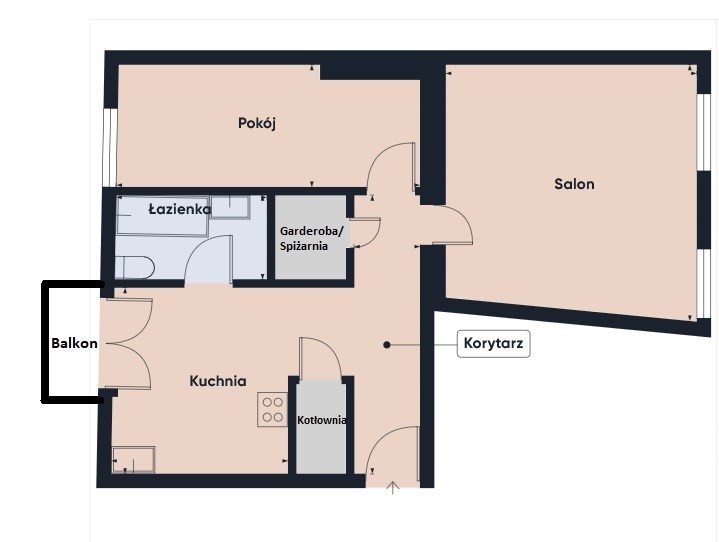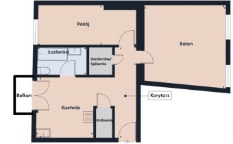 • Funkcjonalny układ pomieszczeń – dwa niezależne pokoje, jasna kuchnia, garderoba