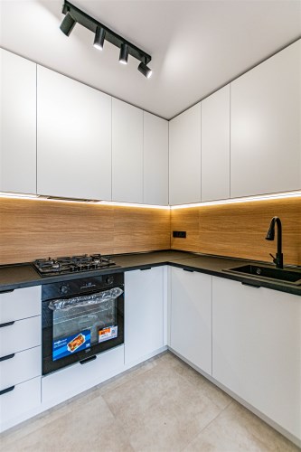 - nowoczesnej otwartej na salon kuchni o pow. 3,70 m2 wyposażonej w nową i funkcjonalną zabudowę kuchenną i sprzęt AGD