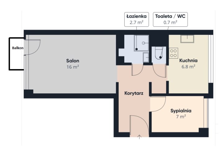 Lokal posiada bardzo korzystny, dwustronny układ pomieszczeń. Dużym atutem jest słoneczny balkon.