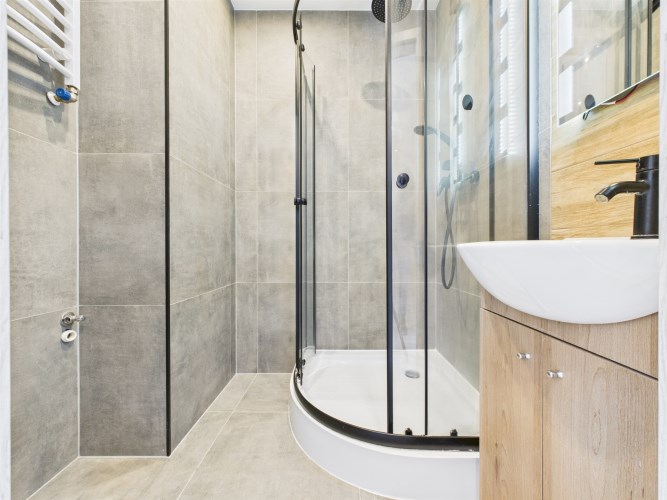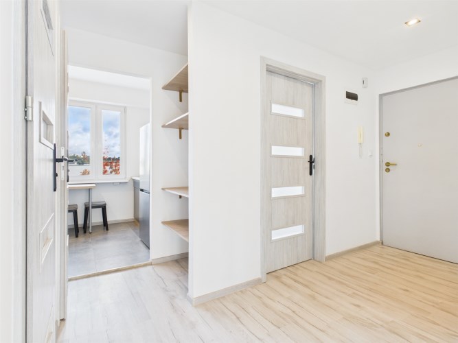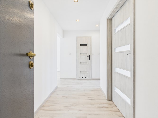 Mieszkanie przeszło remont, w ramach którego wymieniono instalację elektryczną i wodno-kanalizacyjną, stolarkę drzwiową, wykonano gładzie gipsowe i malowanie ścian, a także położono nowe panele podłogowe w pokojach. Zmodernizowano również łazienkę i WC – zastosowano nową glazurę oraz armaturę sanitarną.