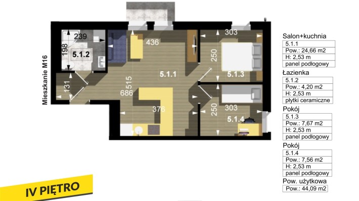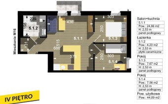 Przedmiotowy lokal ma pow. 44,09m2 i położony jest na IV piętrze. Sprzedawany jest w stanie deweloperskim. Mieszkanie gotowe jest do wykończenia przez nowego nabywcę