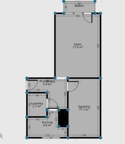 - salon o pow. 17,9m2- z wyjściem na balkon