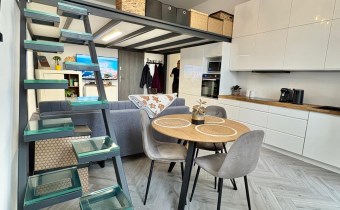 Mieszkanie zostało wykończone w wysokim standardzie i jest w pełni wyposażone w nowoczesny sprzęt AGD (zmywarka, piekarnik, płyta indukcyjna, mikrofalówka, lodówka) oraz telewizor.