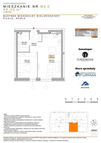 MIESZKANIE 2 POKOJOWE O POW. 46,40M2- W STANIE DEWELOPERSKIM (I PIĘTRO)