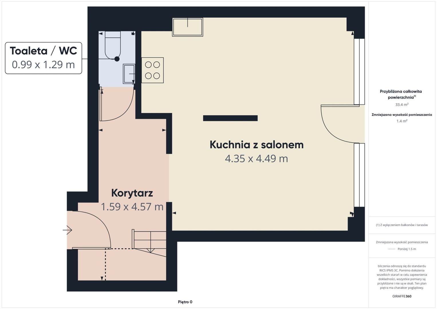Powierzchnia WC 1,5 m2