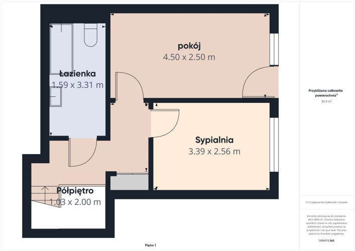 -  pokój/ sypialnia o pow. 9 m2,