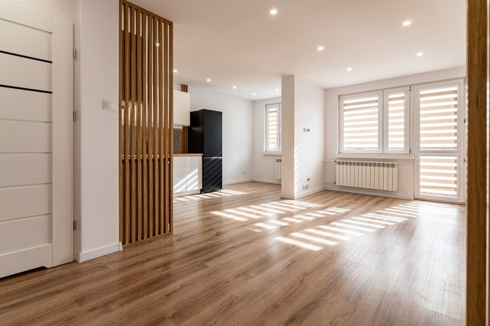 Pokoje: świeżo położone gładzie szpachlowe, nowe panele podłogowe.