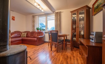 Ogrzewanie trzema źródłami ciepła : piec na paliwo stałe (piwnica), piec dwufunkcyjny gazowy i koza w salonie.