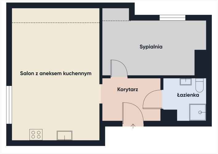 - pokój z aneksem kuchennym o pow. 25,3m2