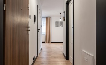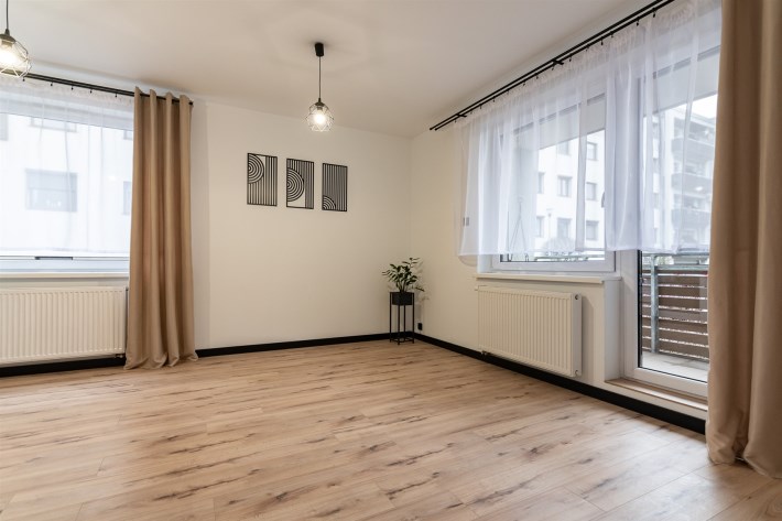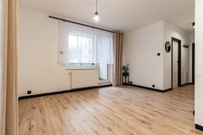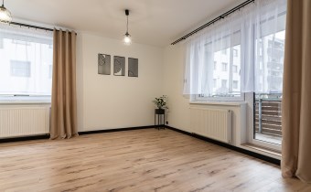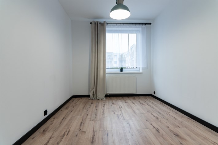 Mieszkanie przeszło remont – wykonano malowanie ścian, położono nowe panele podłogowe wraz z listwami przypodłogowymi oraz zamontowano nowe drzwi wewnętrzne. W salonie i sypialni zainstalowane są rolety zewnętrzne, zwiększające komfort i bezpieczeństwo.