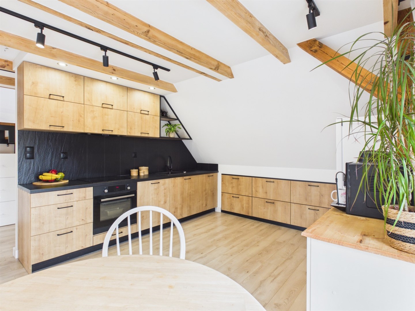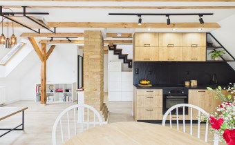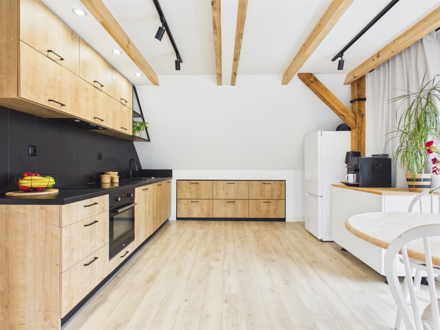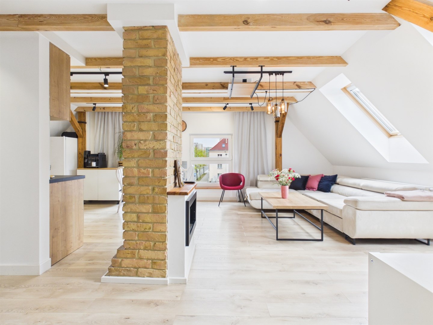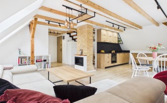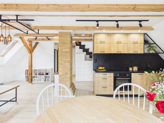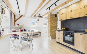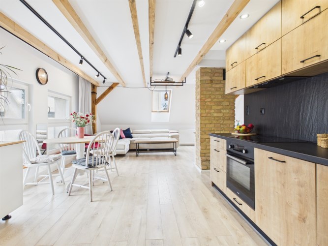 • przestronny i jasny salon z aneksem kuchennym