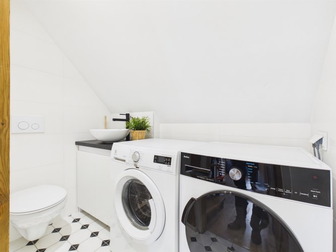 Nieruchomość sprzedawana jest z umeblowaniem widocznym na zdjęciach. Kuchnia wyposażona jest w sprzęt AGD (lodówka, płyta indukcyjna, piekarnik, zmywarka, okap). Okna PCV zapewniają dobrą izolację termiczną i akustyczną. Ogrzewanie gazowe (piec dwufunkcyjny) gwarantuje wygodę użytkowania, a klimatyzacja na piętrze znacząco podnosi komfort w cieplejsze dni.