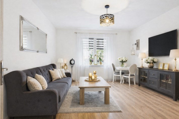 Prezentujemy Państwu starannie wykończone, gustownie urządzone mieszkanie o powierzchni ok. 71 m², zaprojektowane z myślą o komforcie codziennego życia oraz ponadczasowej estetyce.