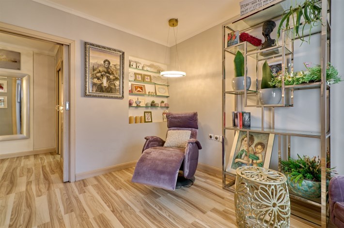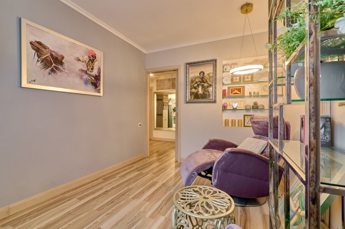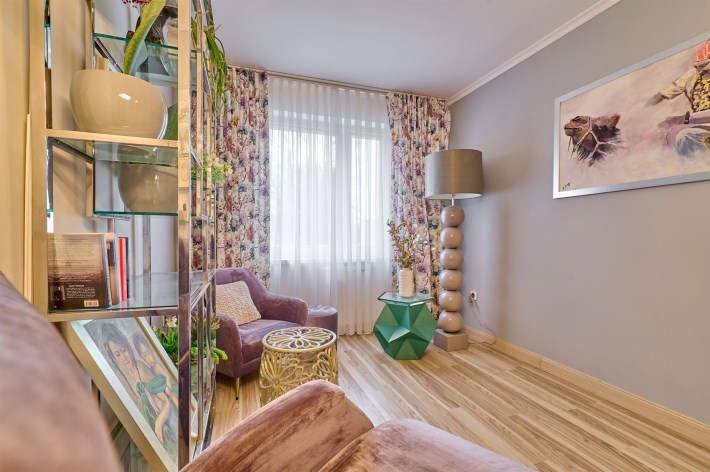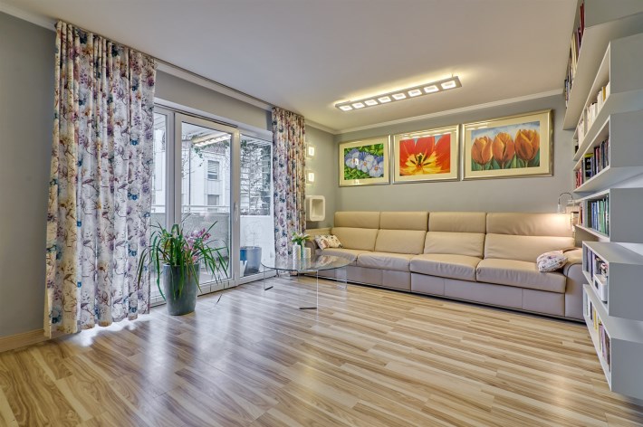 Niemal całość wyposażenia mieszkania pozostaje do dyspozycji nowego szczęśliwego nabywcy. Właściciele zabierają jedynie bibliotekę, niektóre obrazy oraz dekoracje.