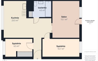 Bardzo dobry układ, wszystkie pomieszczenia z osobnymi wejściami z przedpokoju.