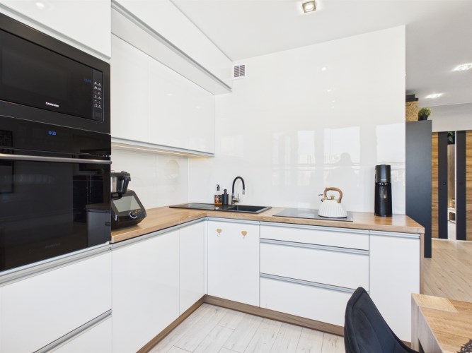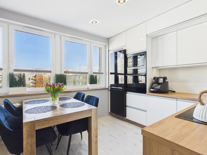 Mieszkanie z KLIMATYZACJĄ, zabudową kuchenną oraz szafą typu Komandor.