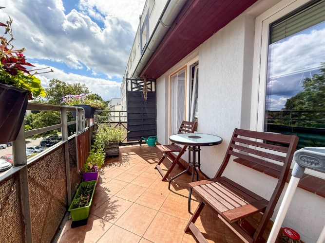 Dwa światy w jednym miejscu – balkon z widokiem na życie miasta i zaciszny taras z drugiej strony budynku.