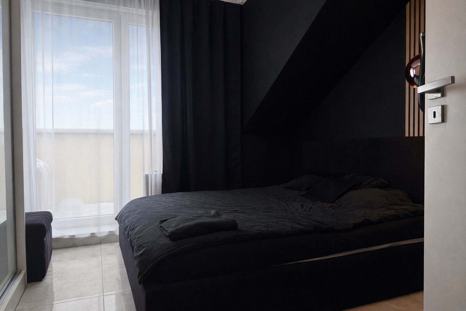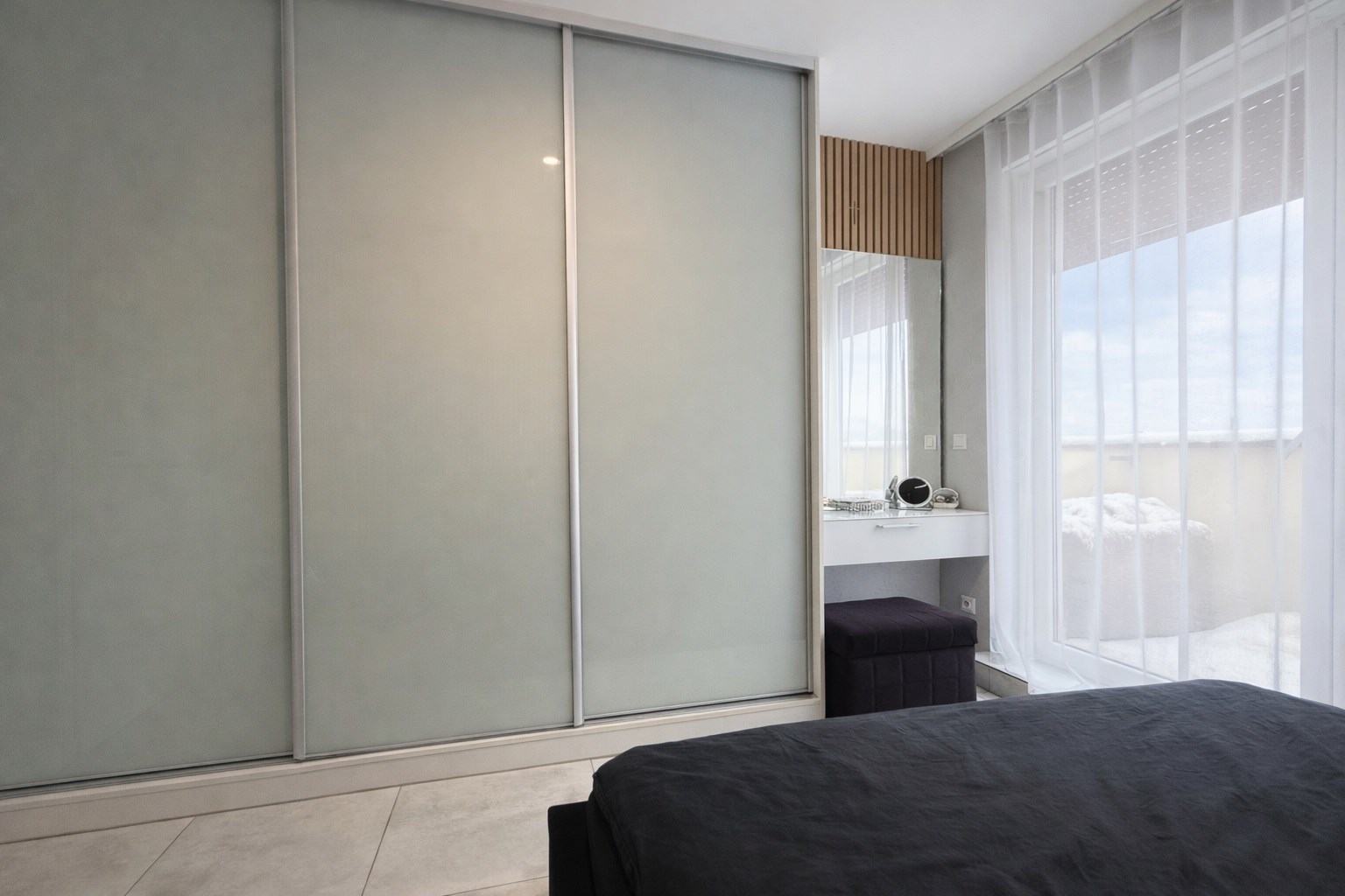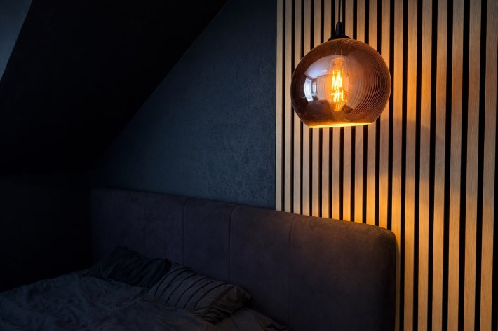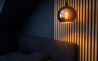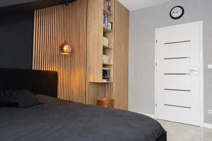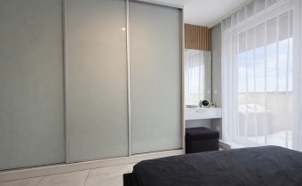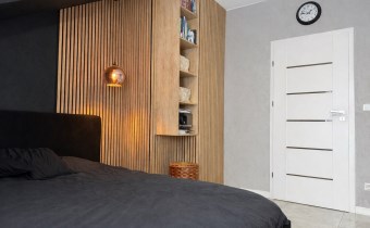 • Główna – 11,52 m², stylowa z lamelami ściennymi, dużą szafą i toaletką oraz wyjściem na balkon,