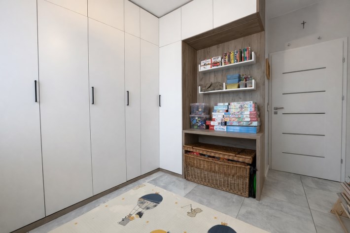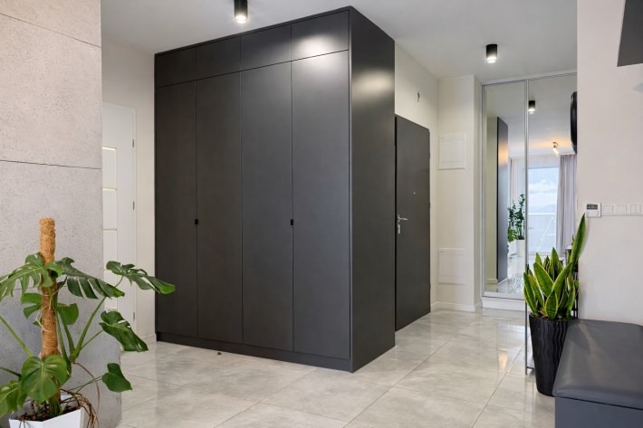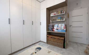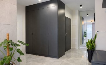• Duży korytarz (8,22 m²) z dwiema szafami pod wymiar, zapewnia miejsce do przechowywania.