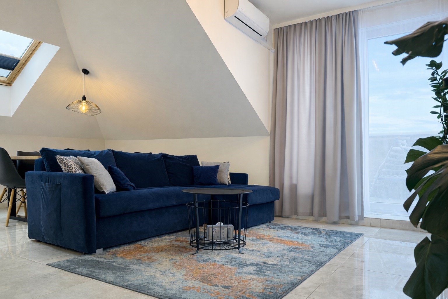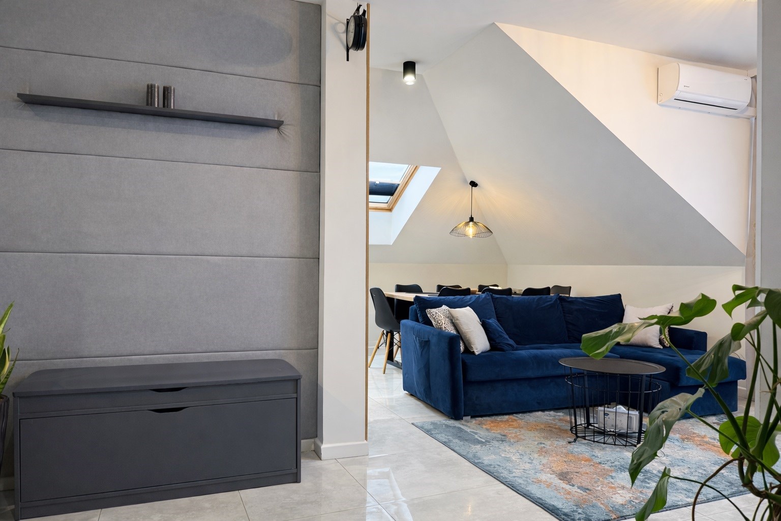Komfort temperaturowy wzmacnia klimatyzacja w salonie.