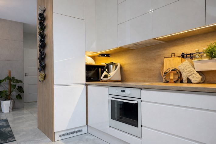 Wyposażenie kuchni szafki kuchenne, sprzęt AGD