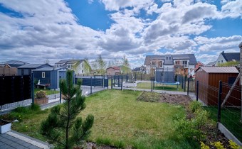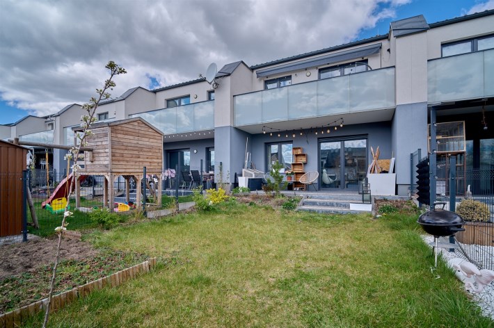 2. Własny ogród jako „przedłużenie mieszkania” – blisko 150 m² ogrodu sprawia, że mieszkanie staje się domem z zielonym otoczeniem i z zadaszoną częścią tarasową. Bezpieczne miejsce dla zabawy dziecka, można organizować letnie grille a przy tym wielkość ogrodu sprawia, że nie stanie się uciążliwym obowiązkiem którego pielęgnacja zajmuje cały wolny czas w weekendy,